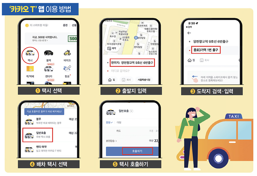 앱을 설치한 후, 실제로 어떻게 사용하는지 알아보겠습니다. 아래의 단계에 따라 택시를 호출해 보세요.